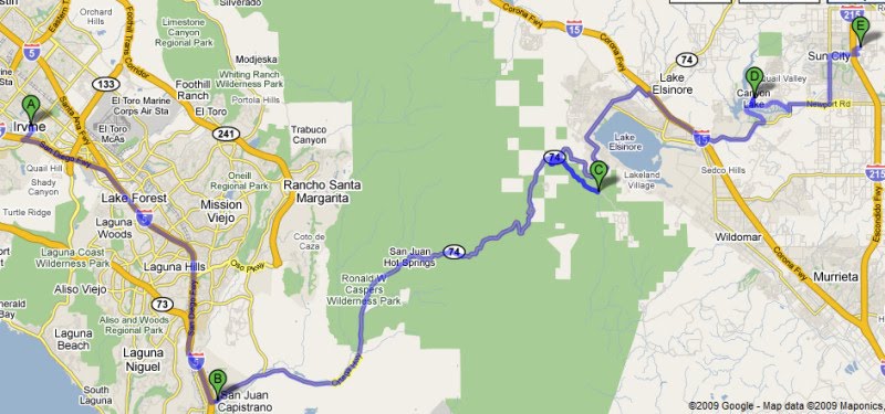The trail is located 20 miles East of the 5 Fwy on Ortega Highway (74), a winding mountain road which runs from San Juan Capistrano to Lake Elsinore, bisecting the Santa Ana Mountains and connecting Orange and Riverside Counties.