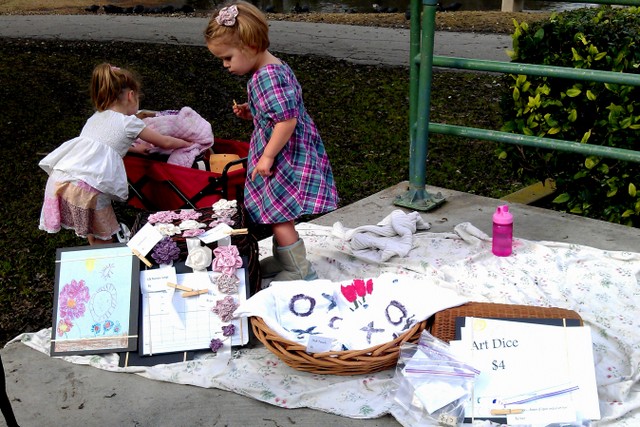 This is just fantastic–seriously! I'm so impressed by the creativity and skills of your group–how wonderful. I have a couple questions, if you don't mind: How do you set prices? Are moms crafting also, or just kids? And this might be kind of silly, but are there ever hurt feelings about things that don't sell? What do you do with leftover wares?