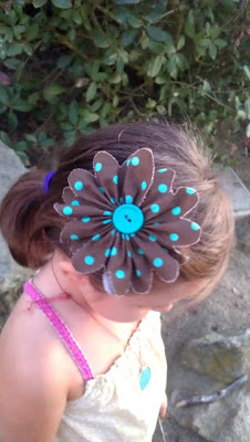 These fabric flowers are a really fun way to use up left over fabric. I made one each for the giveaway bags at my daughter’s birthday party last week along with a used book in each bag from the library book store – Caps for Sale, Dogger, Stone Soup, Little Toot, etc. I also threw in a candy for good measure 🙂