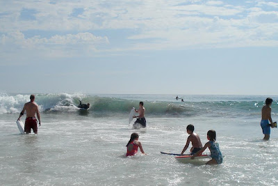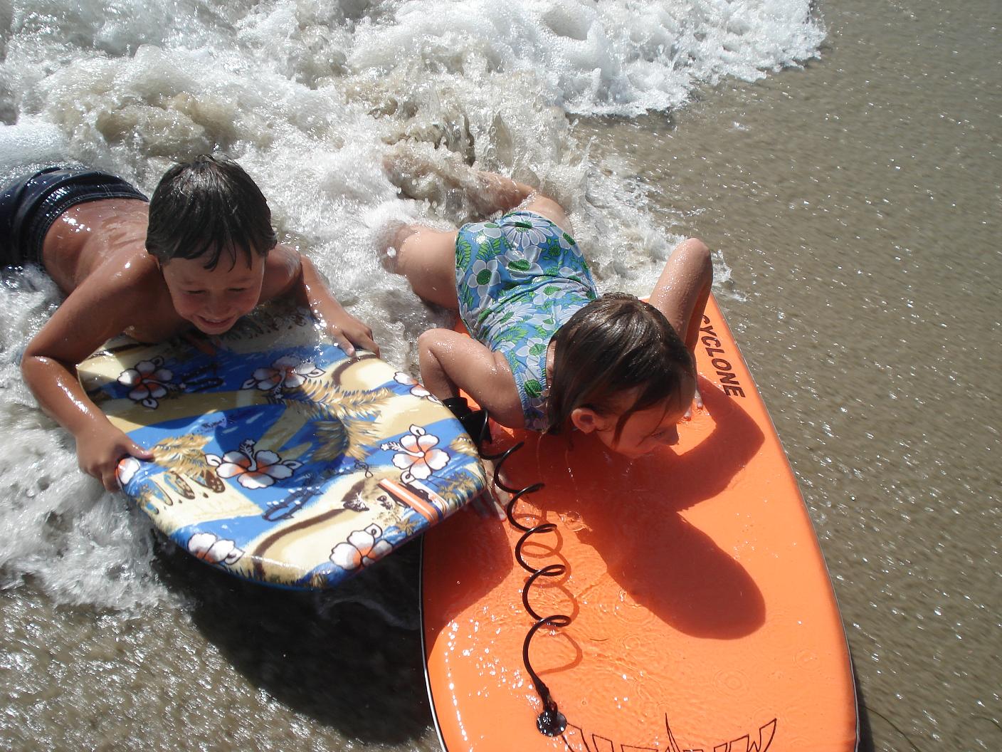 The older ones strapped on their boogie boards and headed for the surf.